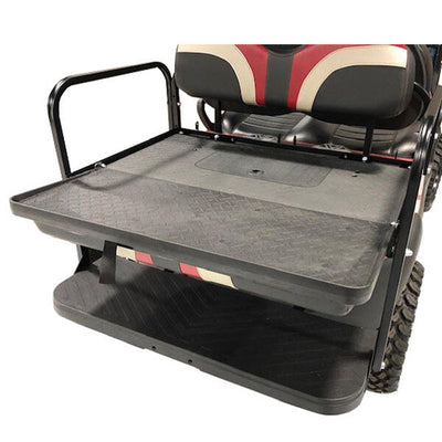 - Stock springs were designed to support a couple of golf bags. The addition of a rear seat kit can add up to 150 lbs plus the weight of 1-2 passengers.