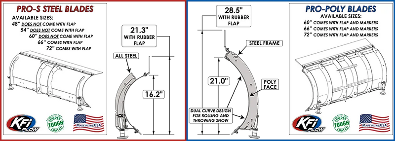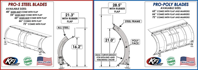 Conquer the snow with the Brand New KFI Pro-Poly System. Featuring a rugged, American-built 3/16" and 1/4" Grade 50 steel construction with a flexible Heavy Duty Poly Face. Designed to throw even the deepest, heaviest snow while making it a smoother experience. The Ploy Plow now comes with a towering 21" Face allowing you to throw snow further, and build banks higher than ever before.